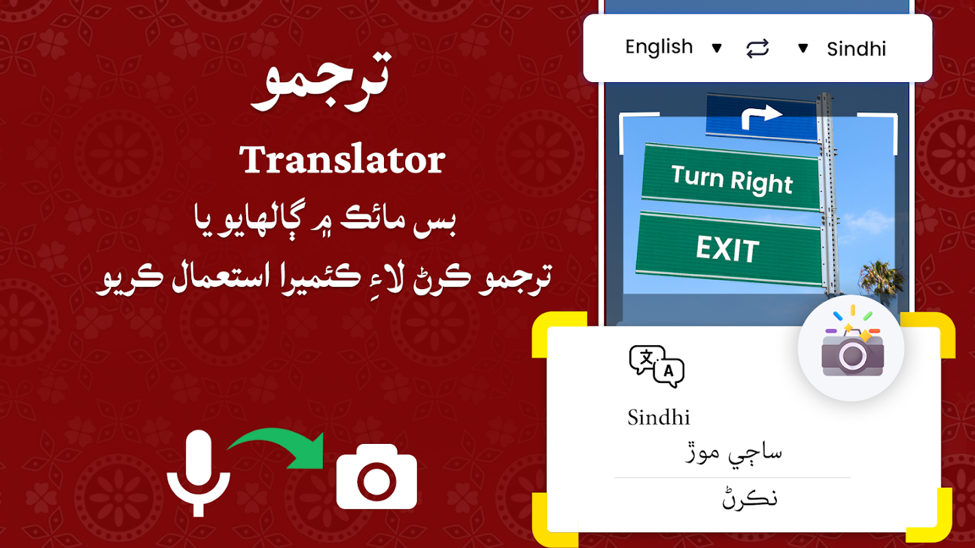 The Language and Conversation Translator helps you communicate across different languages. You can translate text and conversations between Sindhi, English, Urdu, and many other languages.