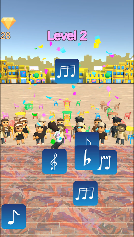 Player has to tap on correct music notes to engage the audience.