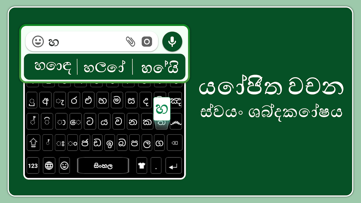 • सभी सिंहली अक्षरों के साथ पूरा सिंहली कीबोर्ड