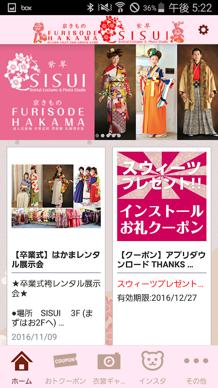 「SISUI」京都室町で創業100年超の高級貸衣装店の成人式振袖と卒業式袴,男紋服、フォーマル貸衣装とプロフォトスタジオ等のサービスのご紹介のアプリです。