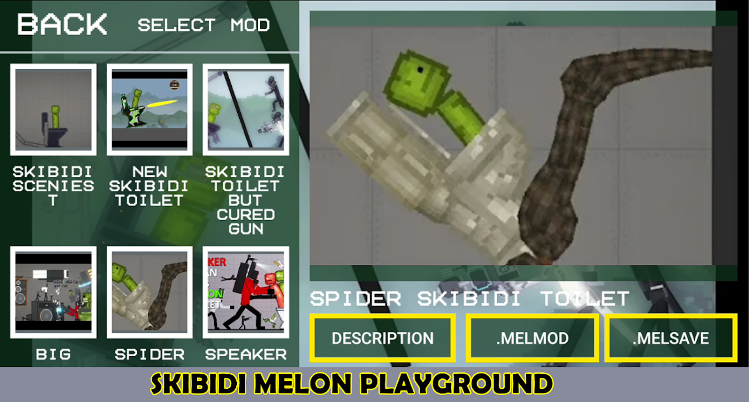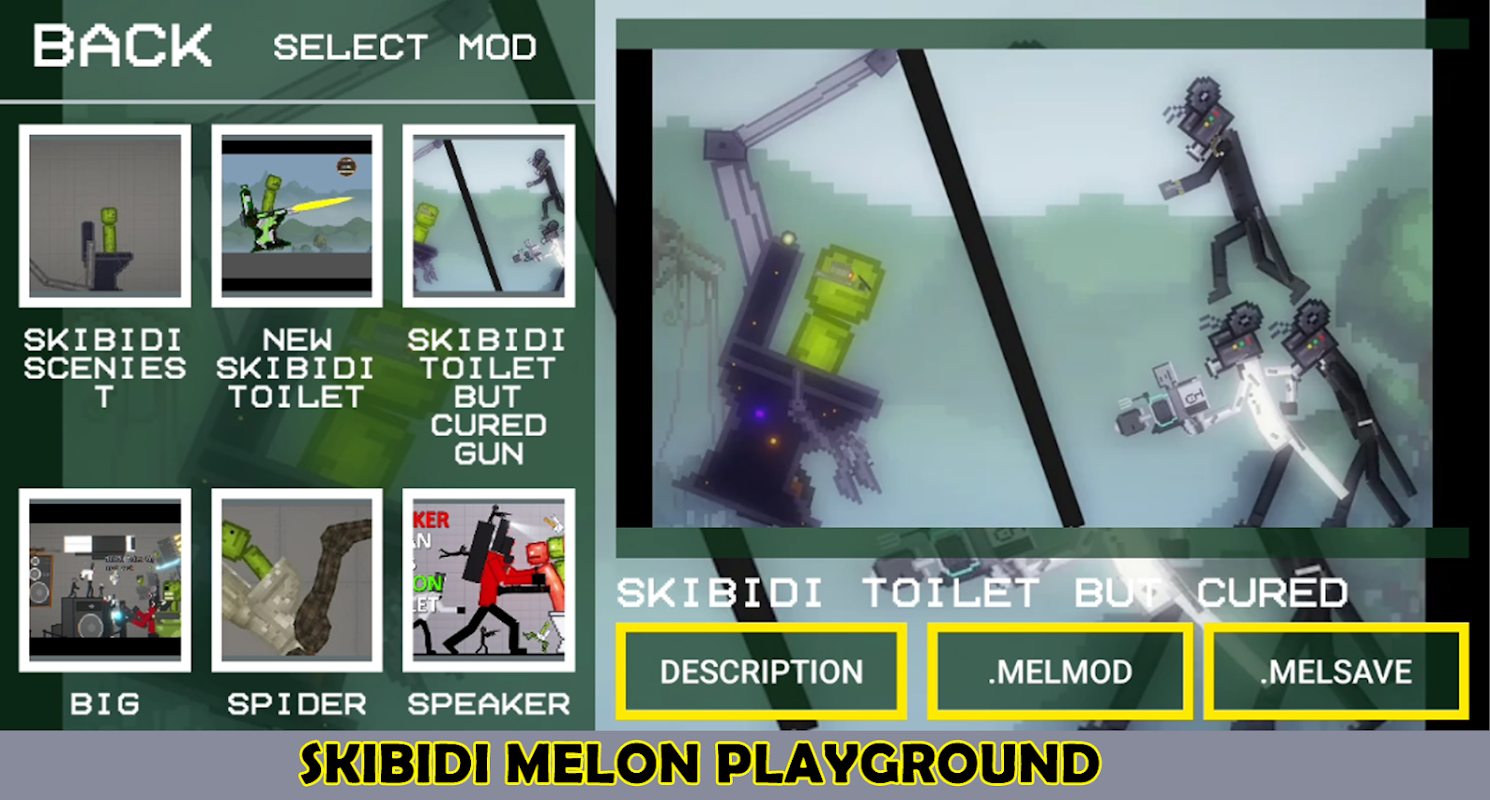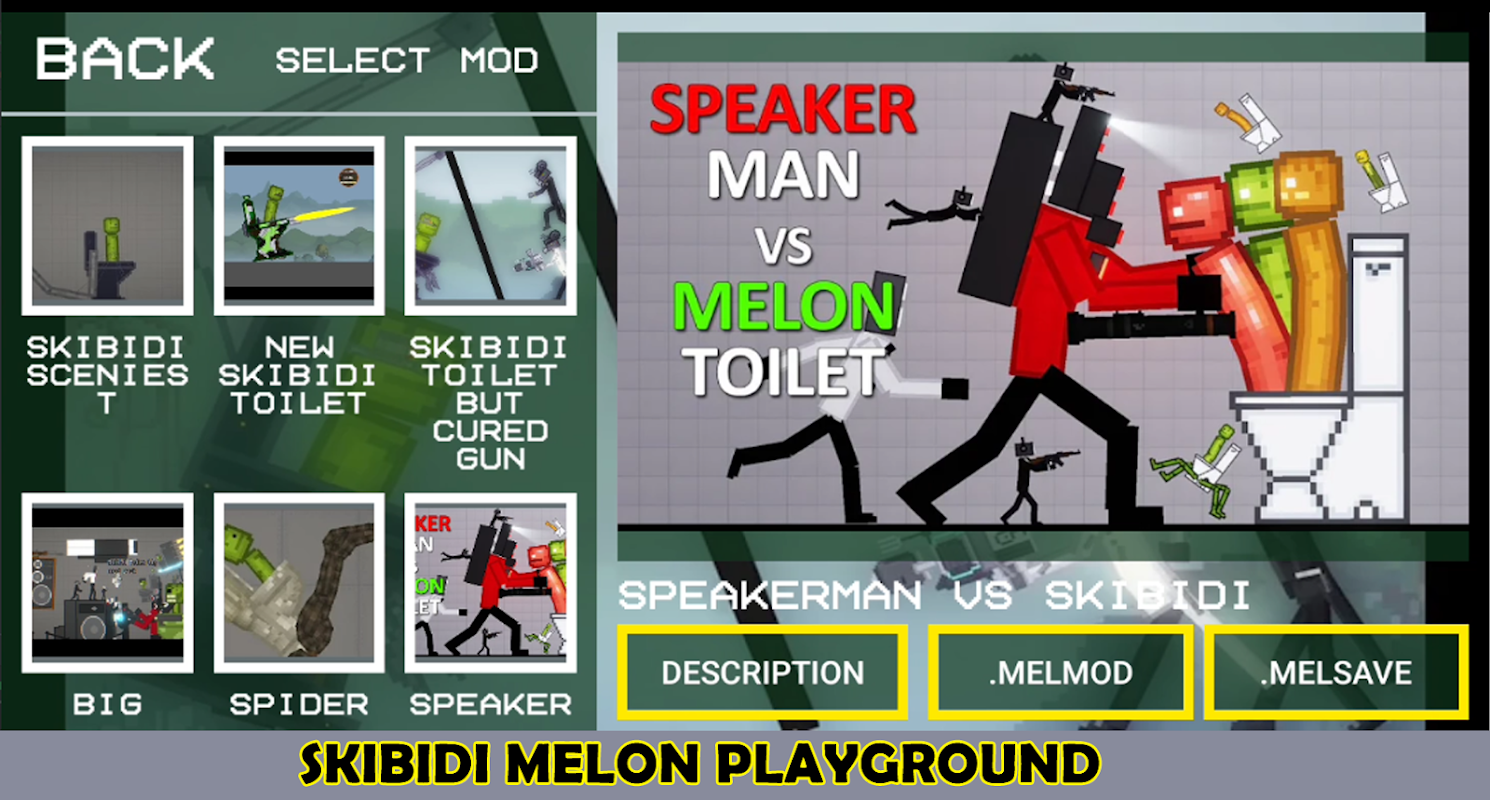 मेलन प्लेग्राउंड के लिए स्किबिडी टॉयलेट मॉड एक अविश्वसनीय और मनोरंजक ऐप है, जो टॉयलेट उत्साही लोगों के लिए अंतिम हॉरर गेम अनुभव प्रदान करता है।