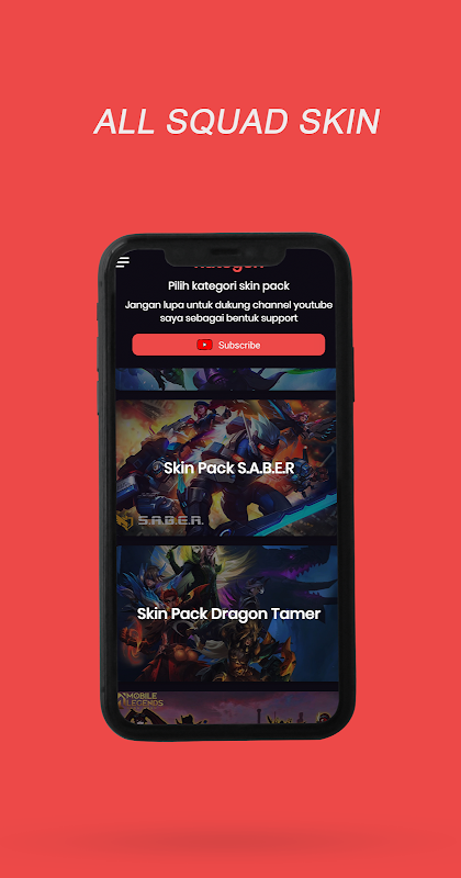 Bisa request MOD SKIN, dan jika menemukan skin yang tidak work dapat mengirimkan email agar segera diperbaiki.
