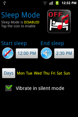स्लीप मोड आवेदन आप चुप मोड का समय निर्धारित करने की अनुमति देगा.
