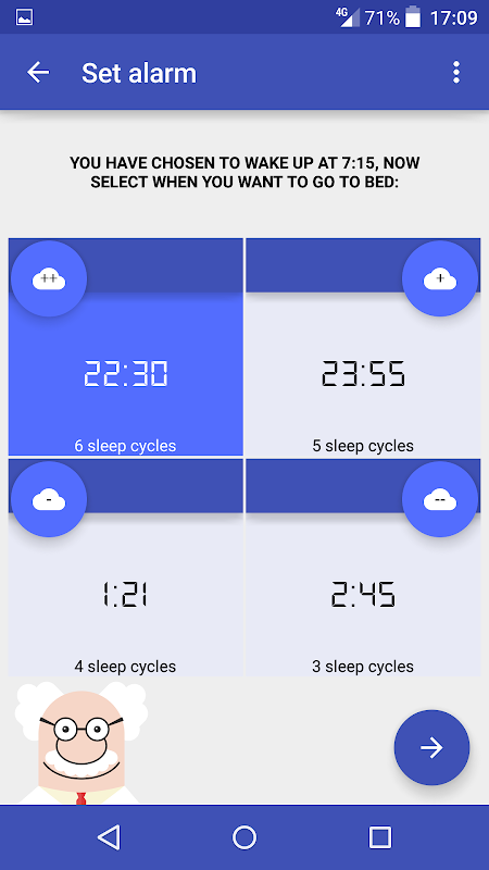 यदि आपको जागृत होने से पहले अलार्म रिंग ('मैं जाग रहा हूँ' बटन के माध्यम से नींद के बारे में सूचना) और अपनी नींद की गुणवत्ता (बाद में दिन में, दूसरे के बारे में अपनी भावनाओं का उल्लेख करते हैं, तो आपको आवेदन का उल्लेख करना होगा अधिसूचना आपको यह जानकारी मांगेगी).आपके व्यक्तिगत कार्यक्रम के अंत में, प्रस्तावित सोने का समय आपकी अपनी नींद के लिए अनुकूल है और आगे की जानकारी की आवश्यकता नहीं होगी.आपके स्मार्टफ़ोन पर एक व्यक्तिगत कोच होगा जो आपको उल्लिखित किया था जब आपको अच्छी नींद लेने के लिए बिस्तर पर जाना पड़ता है.