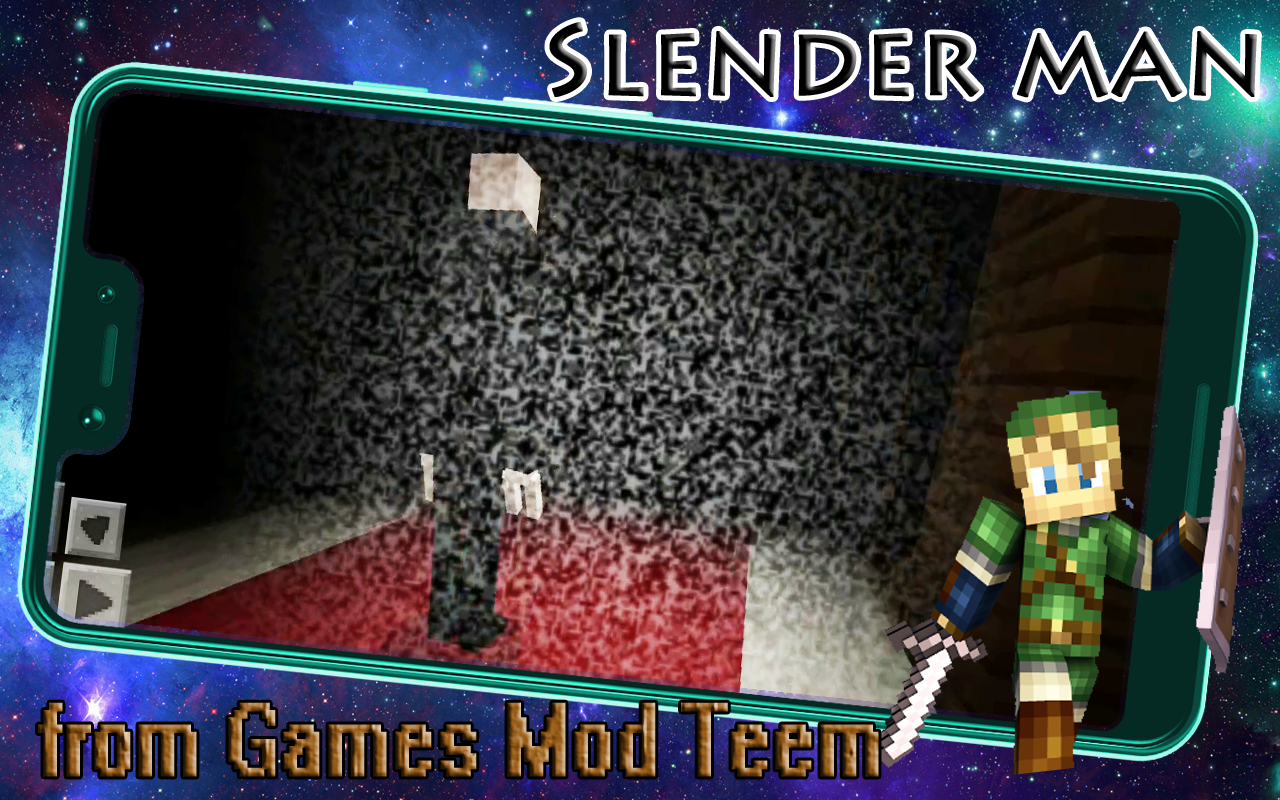This app content 2 Slender Man games mod for Minecraft and survival horror SlenderMan game map MCPE. New mob-humanoid reminds angry mutant Enderman Minecraft or Slendrina. You can download & install SlenderMan survival horror games mod for free! Slender Man as mutant Enderman Minecraft is a very thin and tall humanoid from childhood nightmares, he has no face, but there is a clear intention to kill you. Lives Slender Man in the forest MCPE map. SlenderMan unlike Enderman in Minecraft, is especially scary at night, he is able to disappear and appear right next to the player almost instantly killing him. In project slender he closely resembles object scp 087 b or Slendrina. When you get closer to him than 8 blocks, he will immediately blind you and then kill you. Horror! Try to survival - escape, it rarely helps, but there is a chance ... In MCPE there is protection from this horrible creature. Need to make a special armor.