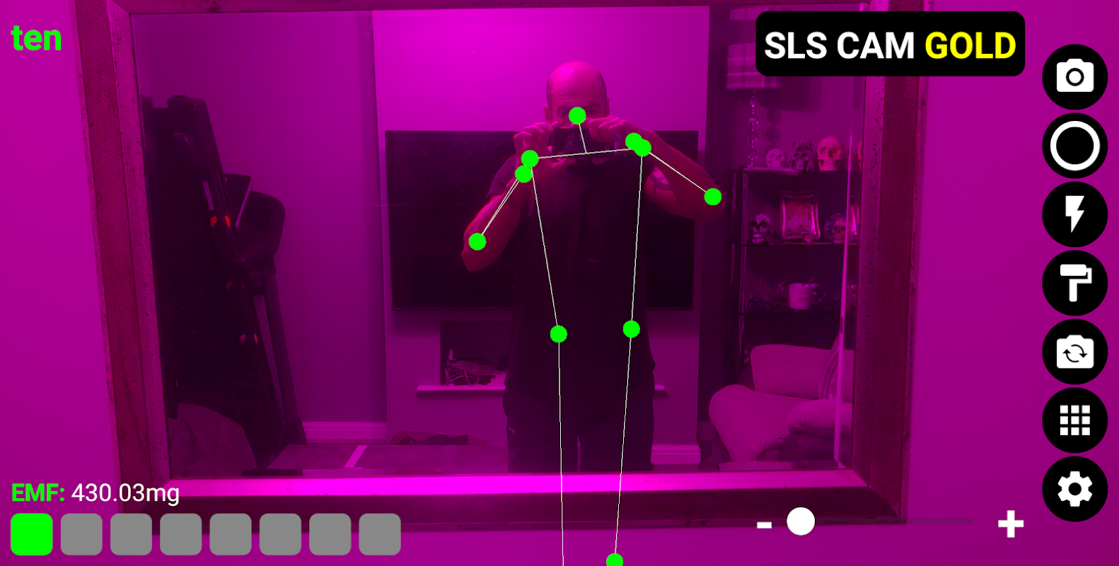 Our SLS Cam Gold application is the most advanced ghost hunting app available, combining EMF Detection, the SLS Camera, and a Word Bank. THE GOLD STANDARD! Allowing you to see, hear and pick up EMF readings from paranormal entities. Hear ghost responses in real time, audibly, and written on screen. As well as real time full skeletal tracking of spirits and paranormal entities.
