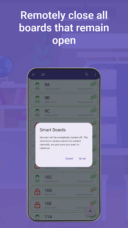 आप अपने स्कूल के सभी स्मार्ट बोर्ड को दूर से ही बंद कर सकते हैं। यदि आपके पास व्हाइटबोर्ड हैं जो आपके स्कूल में कक्षाएं पूरी होने पर खुले रहते हैं, तो आप इन सभी बोर्डों का चयन कर सकते हैं और उन्हें दूर से बंद कर सकते हैं।