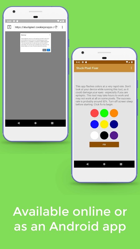 This app has about a 50% success rate and may take hours to fix a pixel. This is because some pixels are unfixable or take a while to fix. If this app dosen't help with the issue, I reccomend you contact your device manufacturor