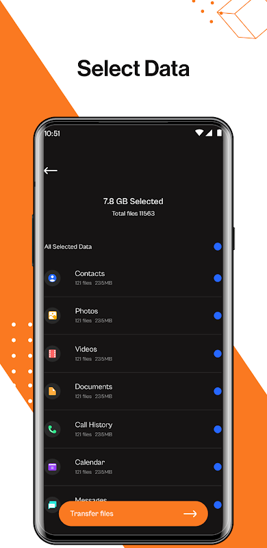 स्मार्ट स्विच, माई कॉपी डेटा शानदार फोन क्लोन ऐप है जो उपयोगकर्ताओं को पुराने फोन से नए फोन में फाइल ट्रांसफर करने में तेजी लाता है। स्मार्ट स्विच ऐप वीडियो, ऑडियो, फोटो, म्यूजिक फाइल, डॉक्यूमेंट, कॉन्टैक्ट ट्रांसफर, मैसेज आदि जैसे फाइल शेयर और डेटा ट्रांसफर कर सकता है। इंटरनेट कनेक्टिविटी की कोई जरूरत नहीं है, क्रॉस प्लेटफॉर्म के जरिए दो स्मार्ट फोन डिवाइस को कनेक्ट करके फाइल ट्रांसफर किया जाता है।