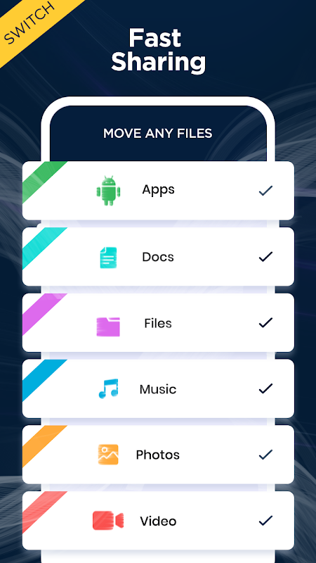 कॉपी करें और सभी फाइलों, फोटो, ऐप्स और मीडिया को नए फोन पर साझा करें।