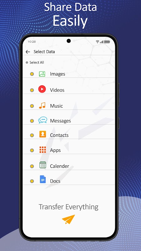 डेटा जल्दी से भेजा जा सकता है और स्मार्ट ट्रांसफर के साथ, मेरा डेटा ट्रांसफर करना आसान है। दोनों फोन के बीच डेटा एक्सचेंज को संभालना आसान है। किसी भी प्रकार की सामग्री स्थानांतरण में कई सुविधाओं के साथ सरल स्थानांतरण।