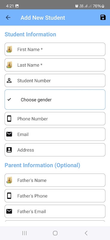 Student Management: Easily manage student profiles, including personal details and parent information.