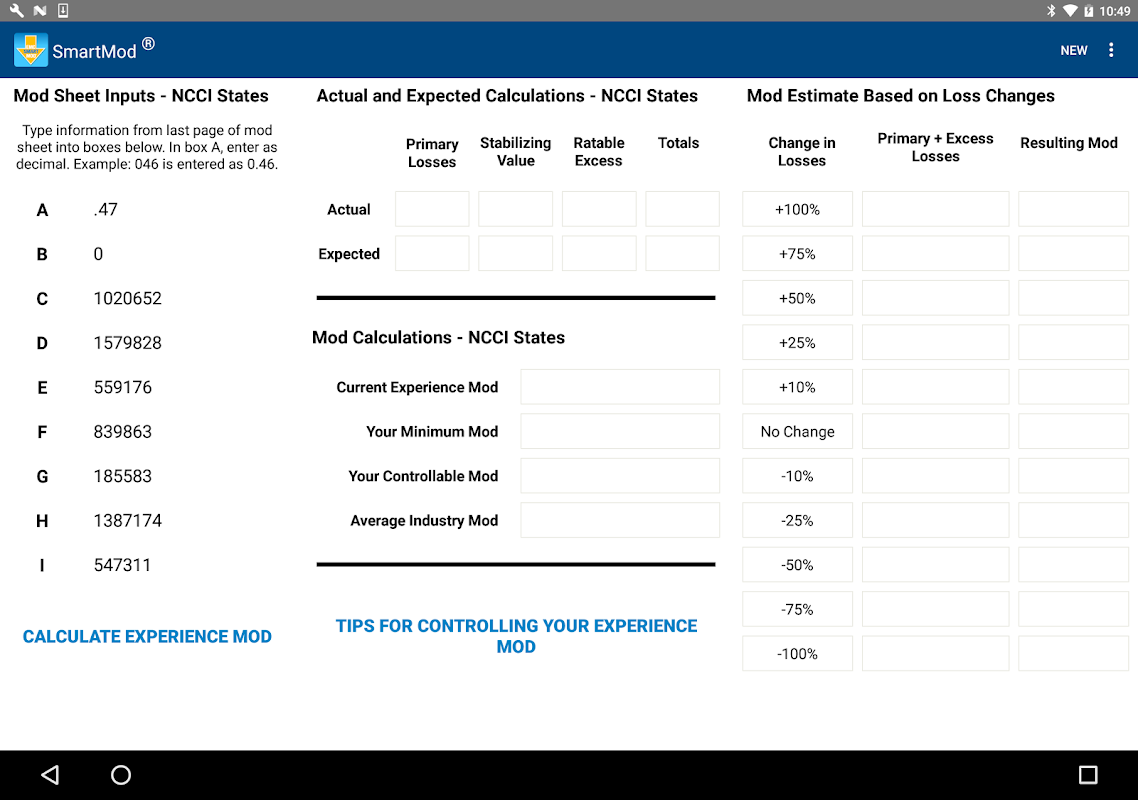 SmartMod was designed to help you analyze your experience modification factor anytime, anywhere. It works best if you already have a working knowledge of the formula and how to interpret the results. SmartMod can be used in all NCCI and independent rating bureau states. For more information about experience rating, contact your workers’ compensation insurance carrier or visit www.ncci.com.