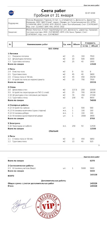 - काम और सामग्री की गणना के अलावा, नए दस्तावेज़ धीरे-धीरे जोड़े जाते हैं (प्रदर्शन किए गए कार्य का अधिनियम, भुगतान के लिए चालान, समझौता, एकीकृत मूल्य सूची, आदि);