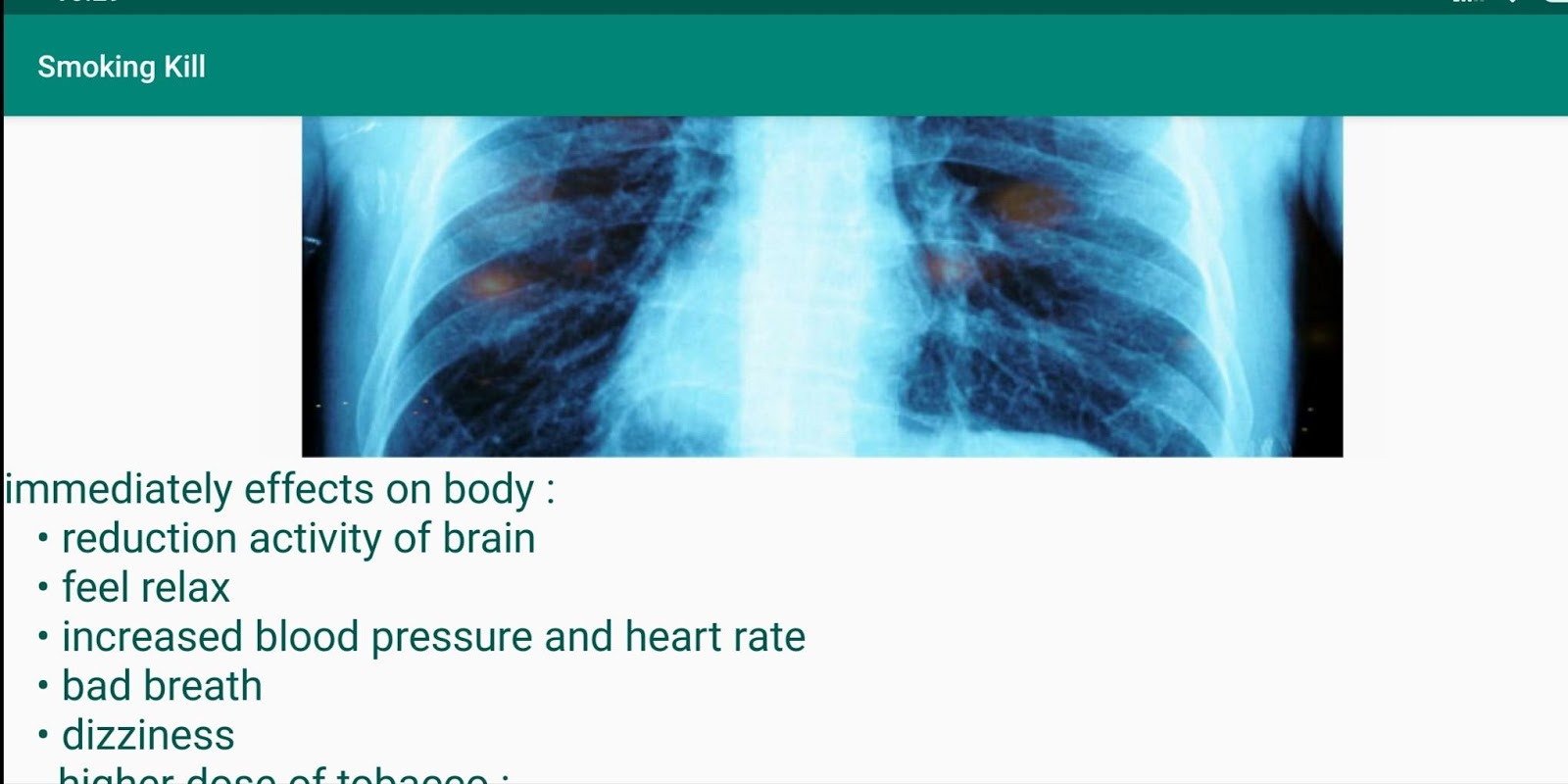 It is health related android app to give information about smoking causes and how to stop smoking.