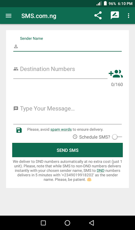 SMS.com.ng में कई दिलचस्प विशेषताएं हैं जिनका आप विरोध नहीं कर सकते। यहां बल्क एसएमएस नाइजीरिया मोबाइल ऐप की विशेषताएं हैं।