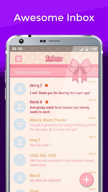 आपको आश्चर्य होगा कि आपकी संपर्क सूची कितनी अच्छी दिखती है और आपके दोस्तों को कितनी अच्छी तरह से टेक्स्ट करना होगा। गुलाबी प्रभाव शैली आपको उन पिजामा पार्टी के बारे में याद दिलाएगी जो आपकी लड़कियों के साथ थी जब आप कार्रवाई के बीच में थे। ।