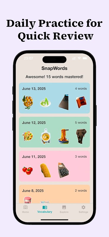 “इसे क्या कहते हैं?” इस सरल प्रश्न ने SnapWords को जन्म दिया। हम एक ऐसा ऐप बनाना चाहते थे जो सभी उम्र के लोगों को उनके आस-पास की दुनिया से नए शब्द सीखने में मदद करे—दृश्यात्मक रूप से, स्वाभाविक रूप से और तुरंत।