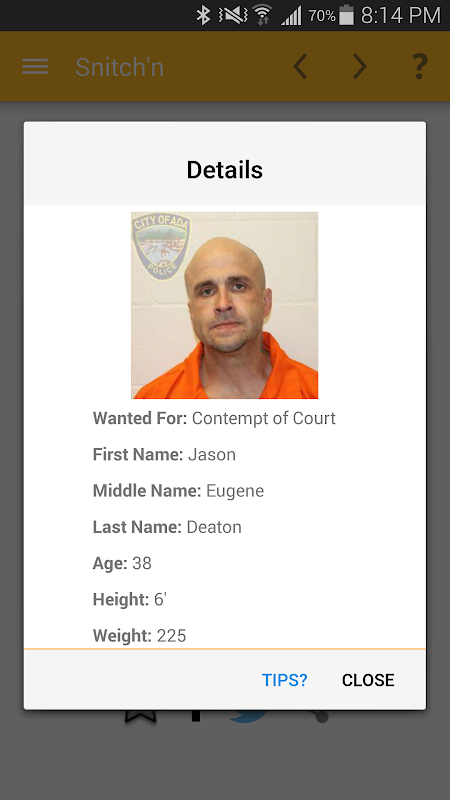 Snitch'n lets you browse police images of wanted criminals, suspects, associates, missing persons, and more. Think you recognize someone? You can share on social media or send a tip to law enforcement.