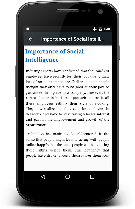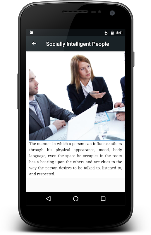 ❰❰ यह ऐप मुख्य रूप से उन पेशेवरों के लिए डिज़ाइन किया गया है जो अपने सामाजिक और पारस्परिक कौशल को बढ़ाना चाहते हैं ताकि वे बिना किसी प्रतिबंध और आत्म-संदेह के अपने विचारों को अधिक स्पष्ट रूप से साझा कर सकें।