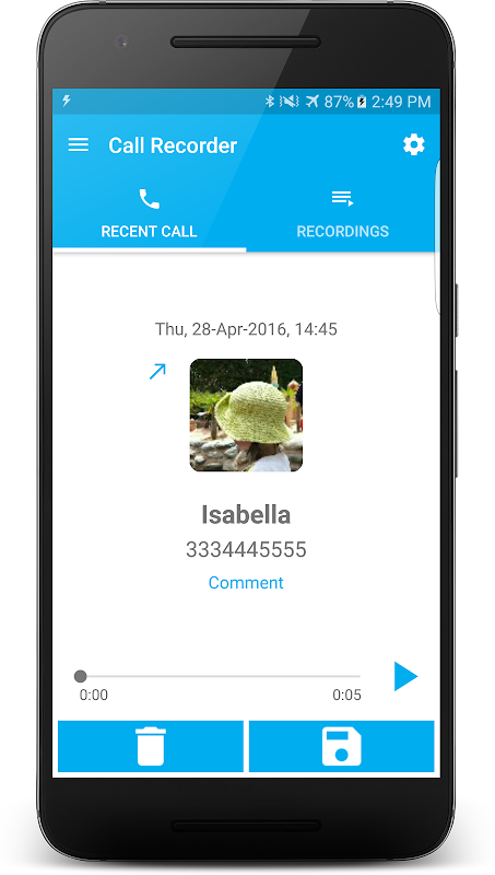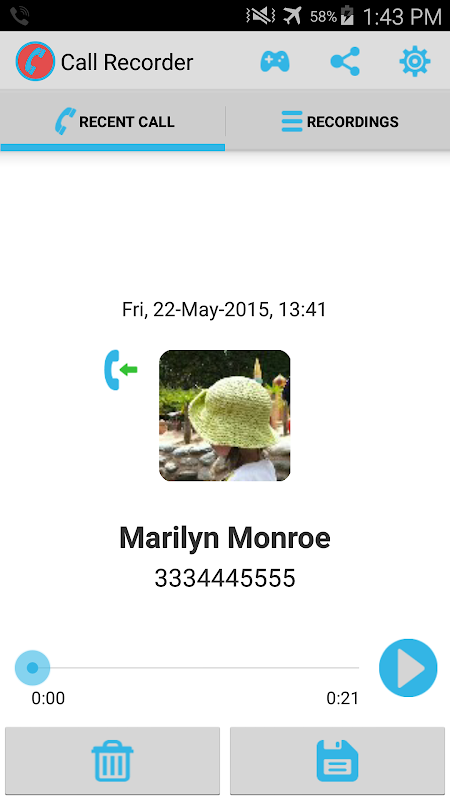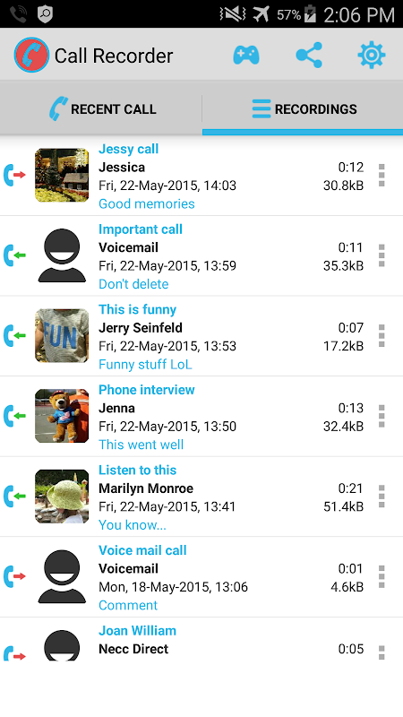 स्वचालित रूप से आपके फोन कॉल रिकॉर्ड और बाद में सुनो। डिफ़ॉल्ट रूप से, एप्लिकेशन स्वचालित रूप से आखिरी कॉल रिकॉर्ड करने के लिए स्थापित की है, लेकिन हम सभी फोन कॉल रिकॉर्ड करने के लिए विकल्प की पेशकश कर रहा है।