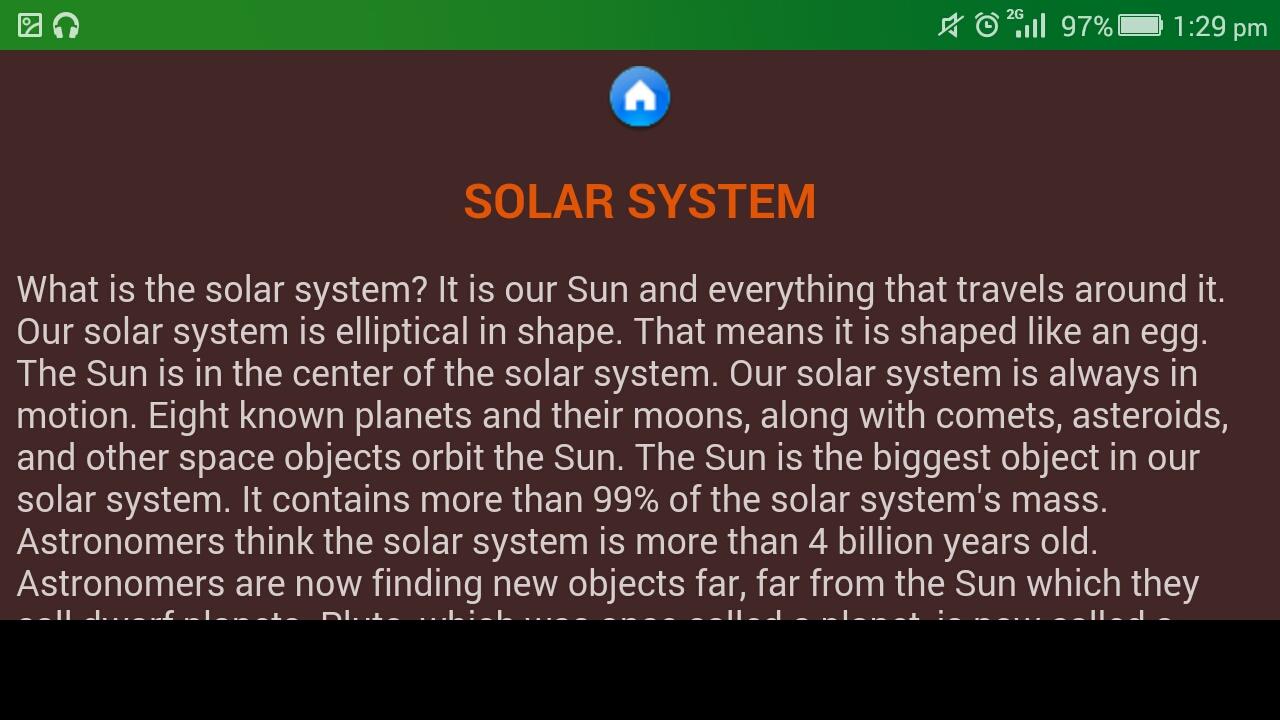 इस एप्लिकेशन के बस सामान्य रूप में विशेष रूप से और ब्रह्मांड में हमारे सौर मंडल पर संक्षिप्त जानकारी प्रदान करता है।