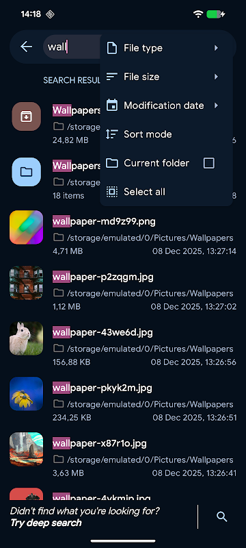 सॉलिड एक्सप्लोरर आपको अपने डिवाइस पर संग्रहीत फ़ाइलों को नेविगेट करने देता है और स्वचालित रूप से उन्हें संग्रह में व्यवस्थित करता है। आप किसी भी फाइल को देख सकते हैं, हटा सकते हैं, स्थानांतरित कर सकते हैं, नाम बदल सकते हैं या साझा कर सकते हैं। यह आपको फ़िल्टर के साथ अनुक्रमित खोज के माध्यम से आवश्यक फ़ाइलों को जल्दी से ढूंढने की अनुमति देता है।