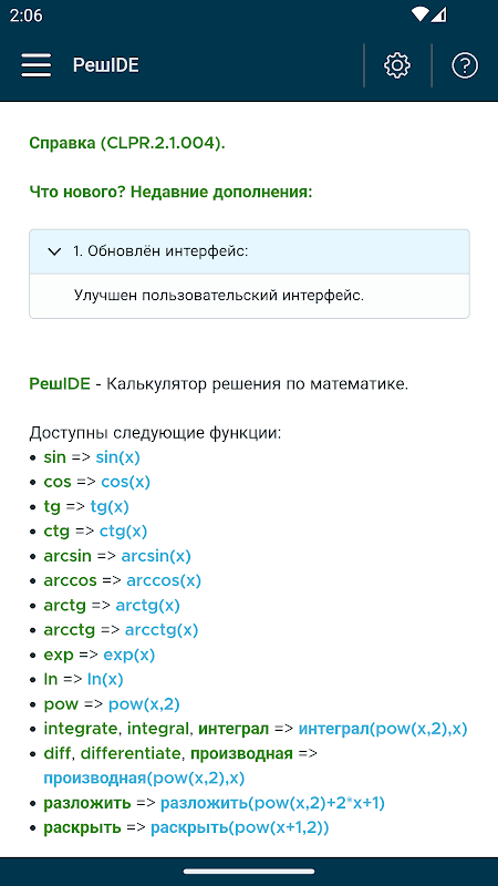 अंतर, अंतर, व्युत्पन्न => व्युत्पन्न(pow(x,2),x)