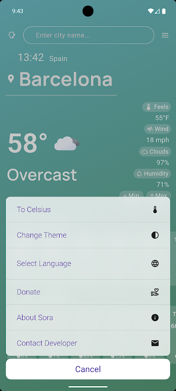 सोरा वेदर एक आधुनिक मौसम ऐप है जिसे आपकी गोपनीयता को प्राथमिकता देते हुए डिज़ाइन किया गया है।
