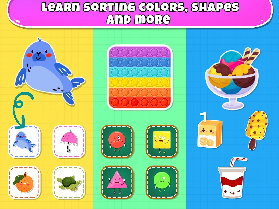 🎉 मज़ेदार मिनी-गेम्स: बैलून पॉप जैसे रोमांचक मिनी-गेम्स का आनंद लें जो सीखने की प्रक्रिया में और भी अधिक आनंद जोड़ते हैं। ये इंटरैक्टिव चुनौतियाँ छँटाई और मिलान कौशल को मजबूत करते हुए अंतहीन मज़ा सुनिश्चित करती हैं।