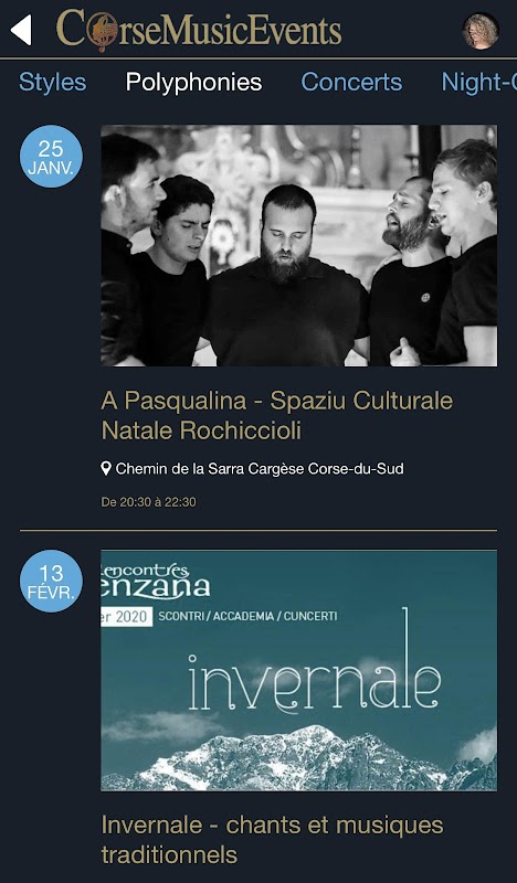 CorseMusicEvents vous permet de voir en un clin d'œil tous les évènements en cours et à venir, en Corse ou par région.