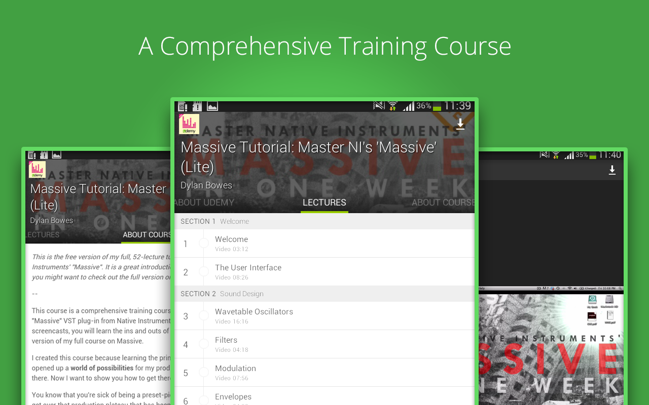 This course is a comprehensive training course in the popular and powerful "Massive" VST plug-in from Native Instruments. Using 100% high-definition screencasts, you will learn the ins and outs of this software. It is the free (lite) version of my full course on Massive.