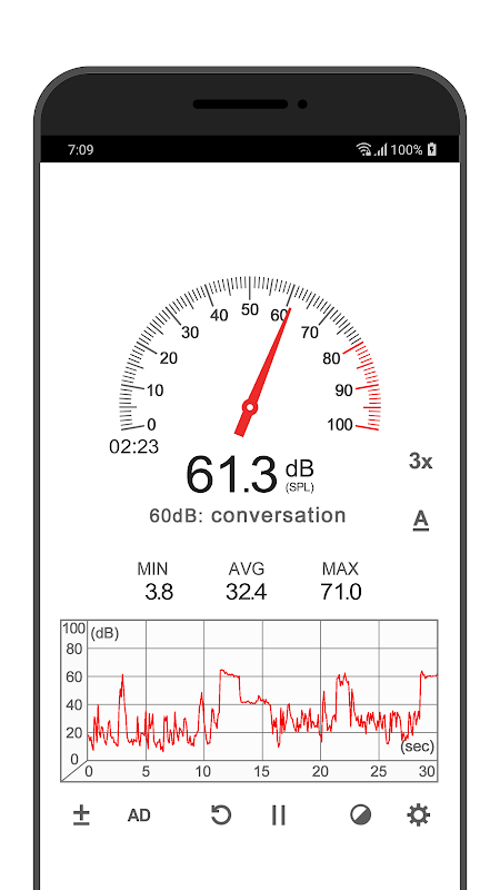 Sound level meter(or SPL) app is shows a decibel values by measure the environmental noise, displays measured dB values in various forms. You can experience tidy graphic design with high frame by this smart sound meter app.