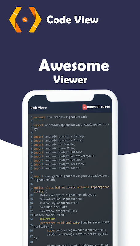 Source Code Viewer helps in reading the source code of a file through the use of this app. It also provides the facility to convert your source code into PDF format. You can find your file throughout your device directory and just click on it to open it. Once you clicked the file. It will be opened. You can now convert it to PDF format.