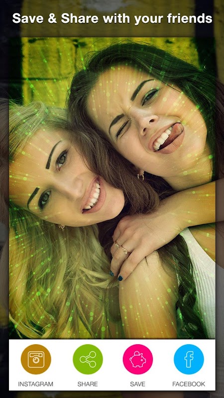 You can share photos to your favorite social networks (Facebook, Twitter etc.) and can also save to photo gallery.