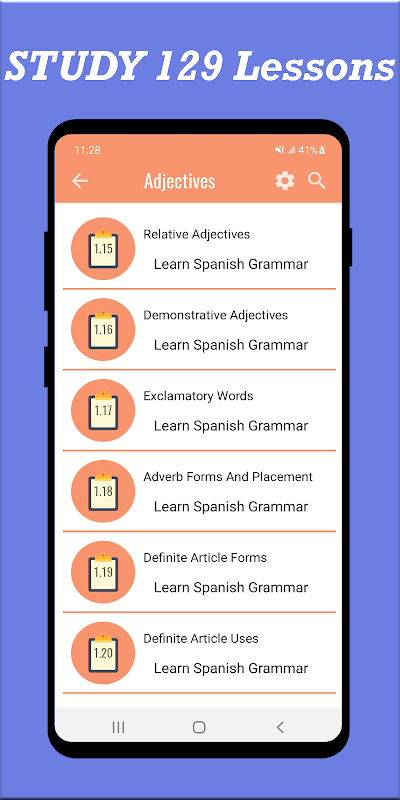 ★ आपके स्पेनिश व्याकरण कौशल को बेहतर बनाने में मदद करने के लिए आवेदन पर 129 पाठ हैं।