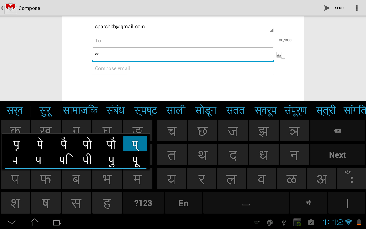 * पॉपअप कुंजीपटल में हर व्यंजन के लिए एक आधा पत्र चरित्र है कृपया ध्यान दें.