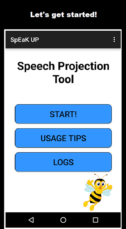 This tool can be used in Speech Pathology therapy sessions in place of a standard sound pressure level (SPL) meter to offer visually appealing feedback, or to continue training at home. The app works by monitoring your voice using the device's built in microphone. As you speak, the app converts your voice into a decibel measurement, which in turn then controls an image within the app. This image moves vertically higher as you speak more loudly and lower as you speak more softly. The goal is to keep the image within the "Great" (green) color zone. Users can adjust the ranges of the color zones on a "Level Input" screen. This screen allows you to enter decibel ranges for the color zones. This allows the user more flexibility during a training session and also allows the app to be used for a variety of speech conditions.