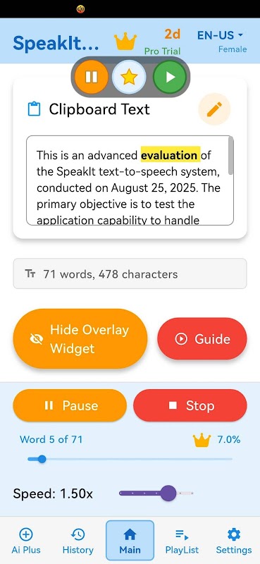 दस्तावेज़ों, लेखों और नोट्स को सुनकर अपनी कार्यक्षमता बढ़ाएँ। हमारा ऐप एक सहज टेक्स्ट-टू-स्पीच अनुभव प्रदान करता है, जिससे आपका समय बचता है और आँखों का तनाव कम होता है। अपने आदर्श श्रवण अनुभव के लिए पढ़ने की आवाज़, गति और पिच को समायोजित करें। कॉपी किए गए टेक्स्ट से प्लेलिस्ट बनाएँ और इसे कभी भी, यहाँ तक कि मल्टीटास्किंग के दौरान भी सुनें। आधुनिक कार्य और अध्ययन के लिए एक आवश्यक उपकरण। बच्चों, छात्रों, कर्मचारियों और बुजुर्गों, सभी के लिए उपयुक्त।
