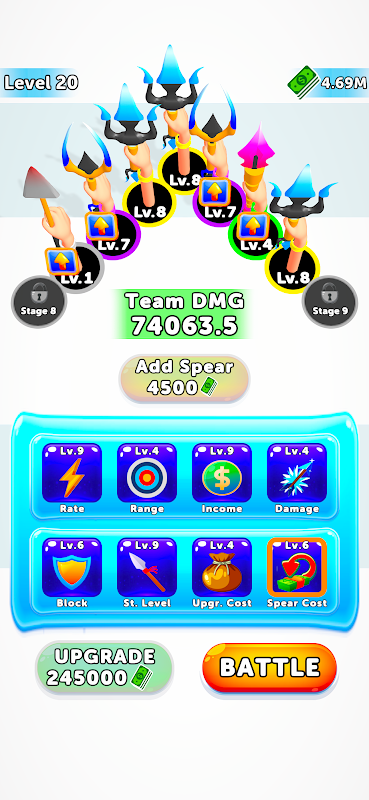 स्तरों पर चढ़ने का मतलब है अपने भालों की ताकत को बढ़ाना, जिसका अंतिम उद्देश्य एक अजेय भाला सेना बनाना है। प्रत्येक द्वार के साथ चुनौती बढ़ती जाती है, जिसमें बेहतर कौशल और बेहतर रणनीति की आवश्यकता होती है।