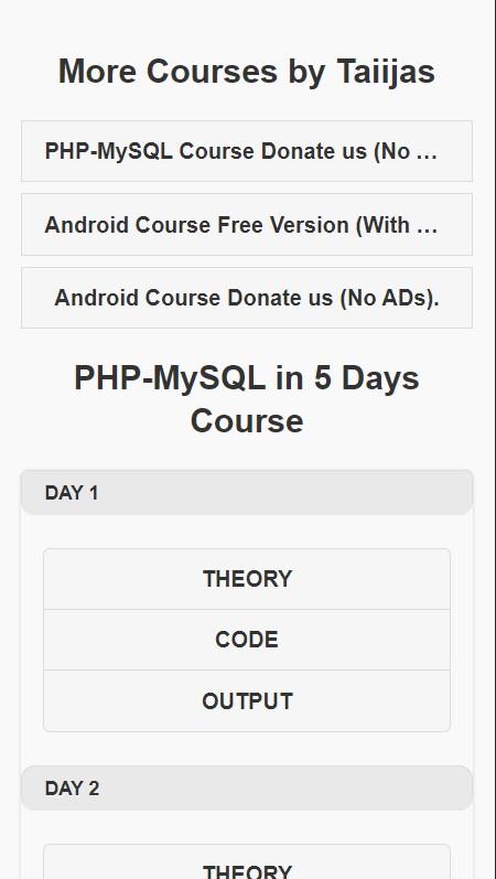 This is the best learning application for PHP and MySQL with complete theory, example code and output with an intuitive and easy to understand language and layout. This is a completely AD FREE application.