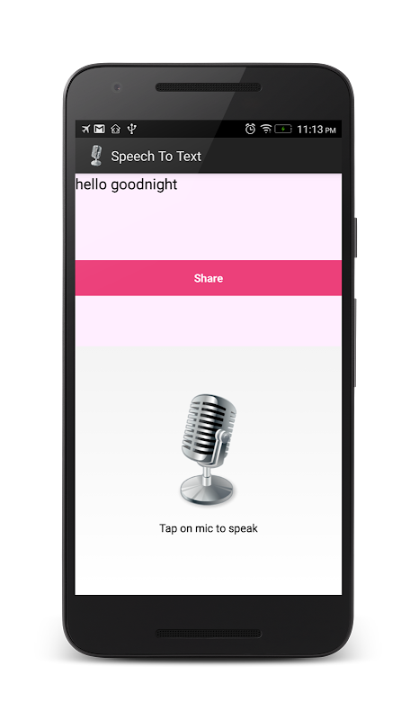 This speech to text enables you to converts your spoken words to text and copy/share to any other android App like Whatsapp,Facebook Messenger, gmail etc....