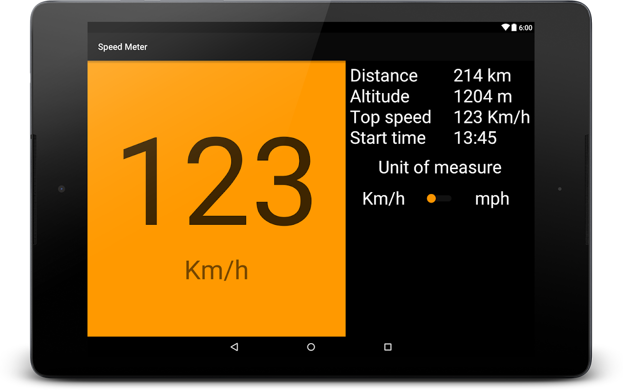 GPS speed meter allows the user to measure speed, top speed, distance, altitude and start time.