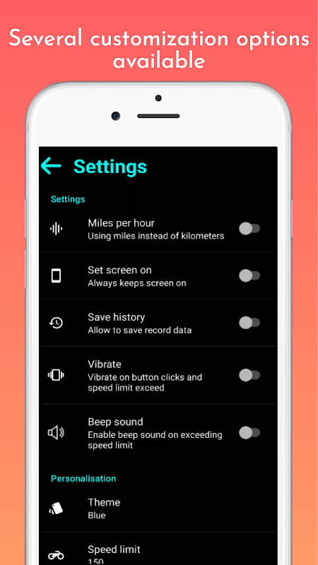 - गति सीमा निर्धारित करें, और यदि गति अधिक हो जाती है, तो डिवाइस को कंपन करने या सीमा से अधिक बीप ध्वनि करने की अनुमति देने के विकल्प के साथ संख्याएं लाल हो जाएंगी।