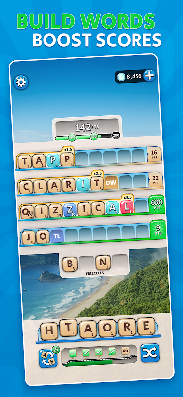 • रणनीतिक फ्रीसेल स्लॉट्स आपको बड़े शब्द गढ़ने की आज़ादी देते हैं. नई चालों को अनलॉक करने और अपने गेमप्ले विकल्पों को बढ़ाने के लिए अस्थायी रूप से अक्षर जमा करें.