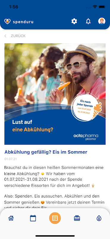 आपके प्लाज्मा दान से पहले, दौरान और बाद में स्पेंदुरु आपका साथ देता है! अब से आप आसानी से ऐप के माध्यम से अपनी नियुक्तियों की व्यवस्था कर सकते हैं, नवीनतम समाचारों और प्रचारों के बारे में जानकारी प्राप्त कर सकते हैं और हमेशा अपने सभी दाता डेटा का अवलोकन भी कर सकते हैं।