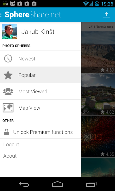 Mobile application for uploading Android 4.2 Photo Spheres to http://sphereshare.net web application. Photo Spheres are full 360° Panorama Pictures introduced in Android 4.2 for Nexus devices. You can share a private picture with anyone or add it to a public Photo Sphere gallery, view popular Spheres and other's profiles.