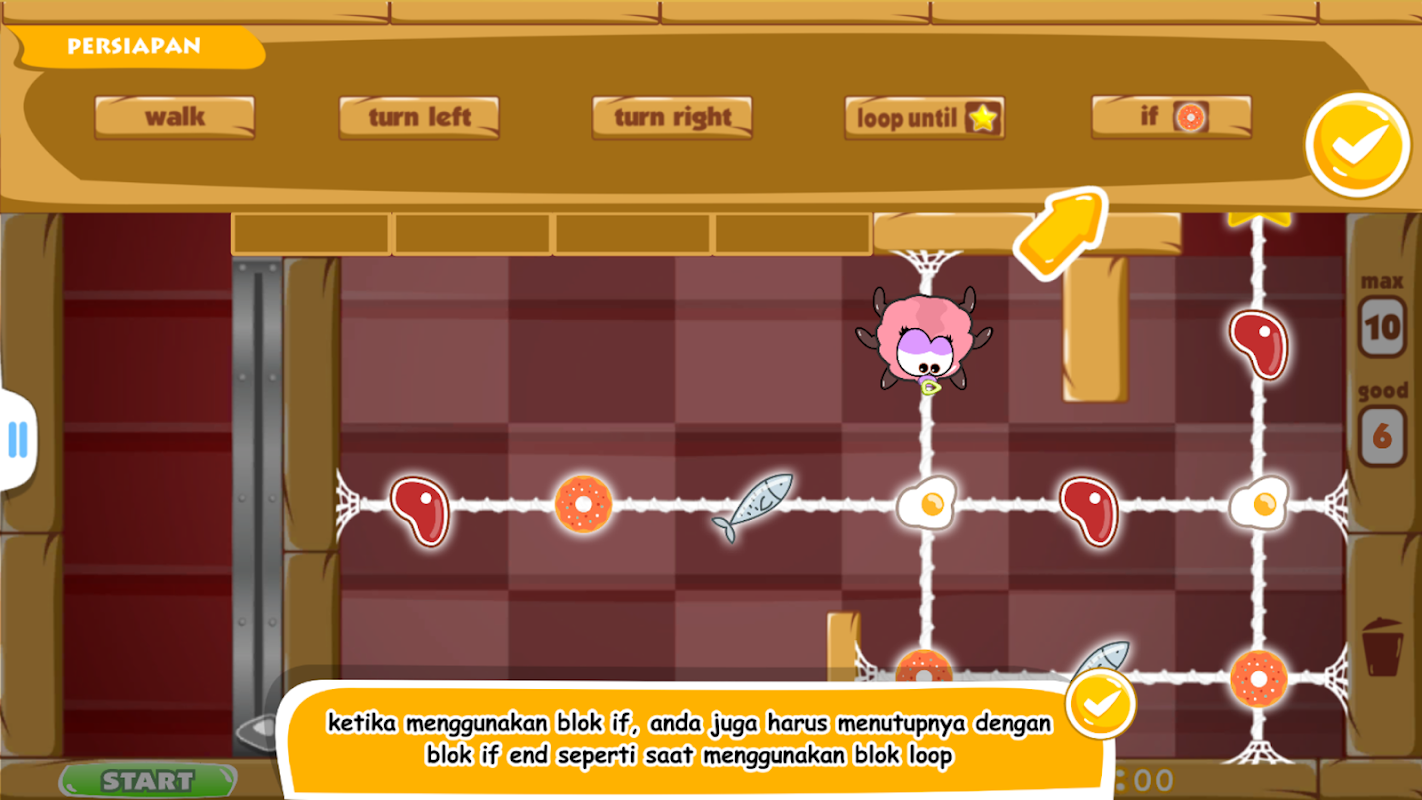 इस गेम में आप सीखेंगे कि कोडिंग कैसे काम करती है, आपको प्रोग्रामिंग की बुनियादी संरचना के बारे में सामग्री दी जाएगी। इस एप्लिकेशन में सीखने की अवधारणा को दिलचस्प गेम और दिलचस्प ध्वनियों के साथ इंटरैक्टिव रूप से डिज़ाइन किया गया है ताकि यह खेलते समय आपको बोर न करे।