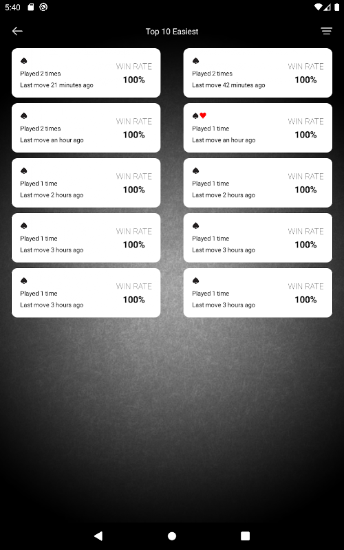 मौजूदा गेम्स को जीत दर या हाल ही में खेले गए गेम के आधार पर क्रमबद्ध करें, खुद को चुनौती देने के लिए सबसे कठिन गेम चुनें, या आराम करने के लिए सबसे आसान गेम चुनें.