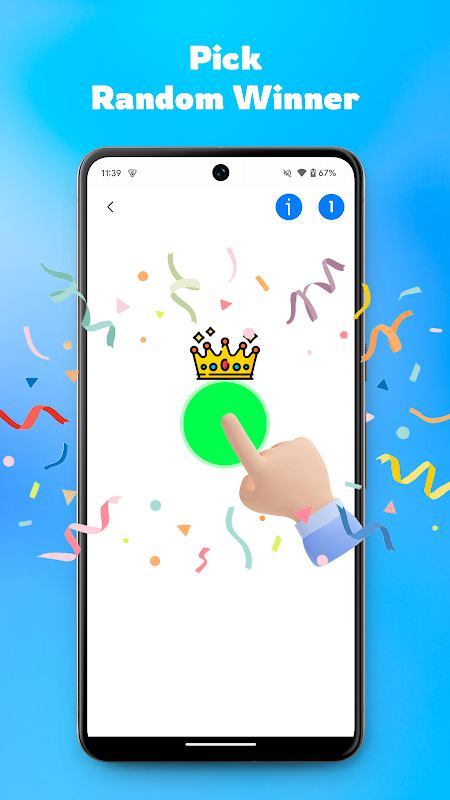 अपने दोस्तों को इकट्ठा करें और व्हील स्पिनर: फ़िंगर चॉज़र को चुनने दें कि कौन पहले जाएगा या राउंड जीतेगा। हर कोई बस स्क्रीन पर अपनी उंगली रखता है, और ऐप बेतरतीब ढंग से एक चुन लेता है—गेम, रैफ़ल और सहज चुनौतियों के लिए आदर्श। हर राउंड जीवंत और निष्पक्ष लगता है।